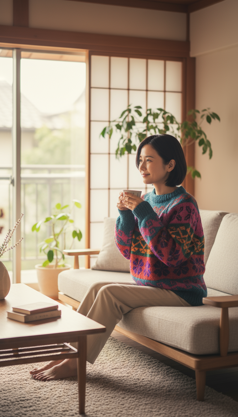 ボリビア・ラパスで民芸店を営むお姉さんが手編みしたセーターです。南米らしい色合いにコカの葉やチチカカ湖の波などを表した模様を編み出した一品です。太めの羊毛毛糸で編まれており、ざっくりとしたカジュアルな印象でありながら柔らかい着心地です。手編みのため、襟ぐりの広さなどに個体差があります。どこを探しても見つからない、個性的な1枚です。