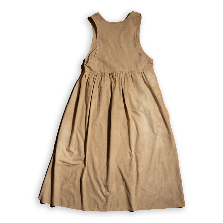一款由布料制成的原创咖啡色连衣裙。一件古色古香的连衣裙,由@otsuks_coffee 的回收咖啡豆制成。