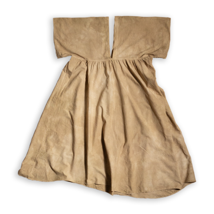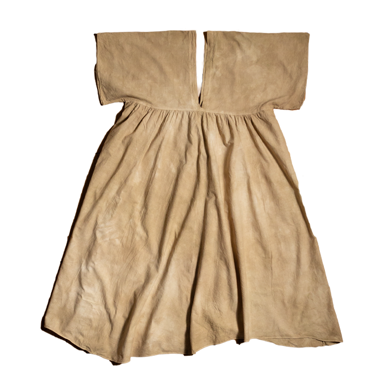 一款由布料制成的原创咖啡色连衣裙。一件古色古香的连衣裙,由@otsuks_coffee 的回收咖啡豆制成。