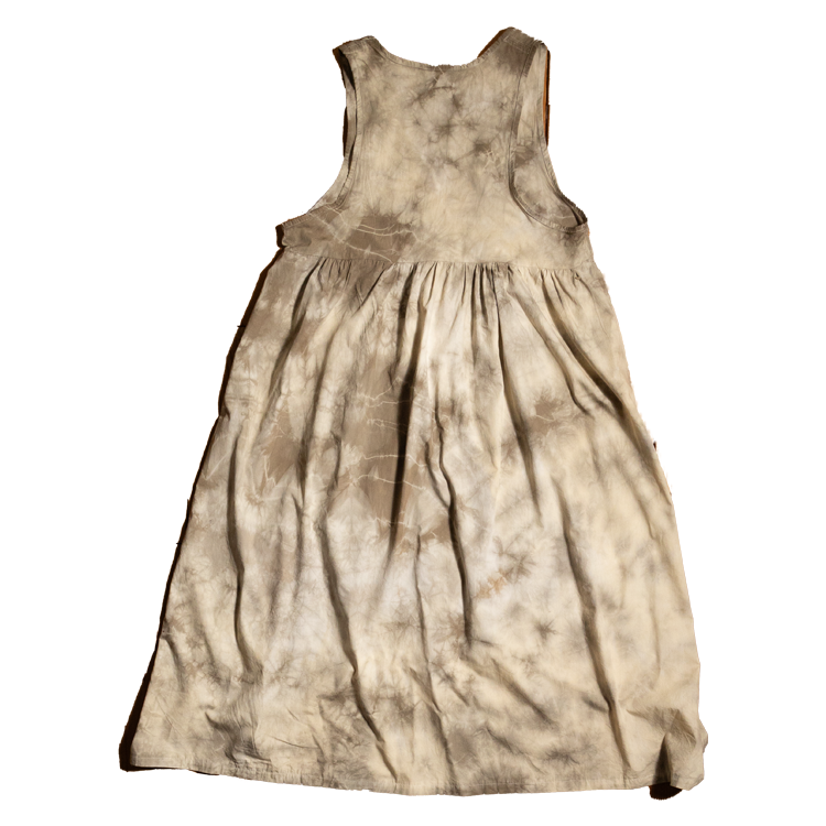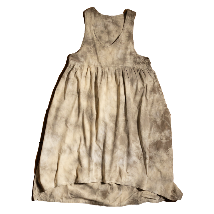 一款由布料制成的原创咖啡色连衣裙。一件古色古香的连衣裙,由@otsuks_coffee 的回收咖啡豆制成。