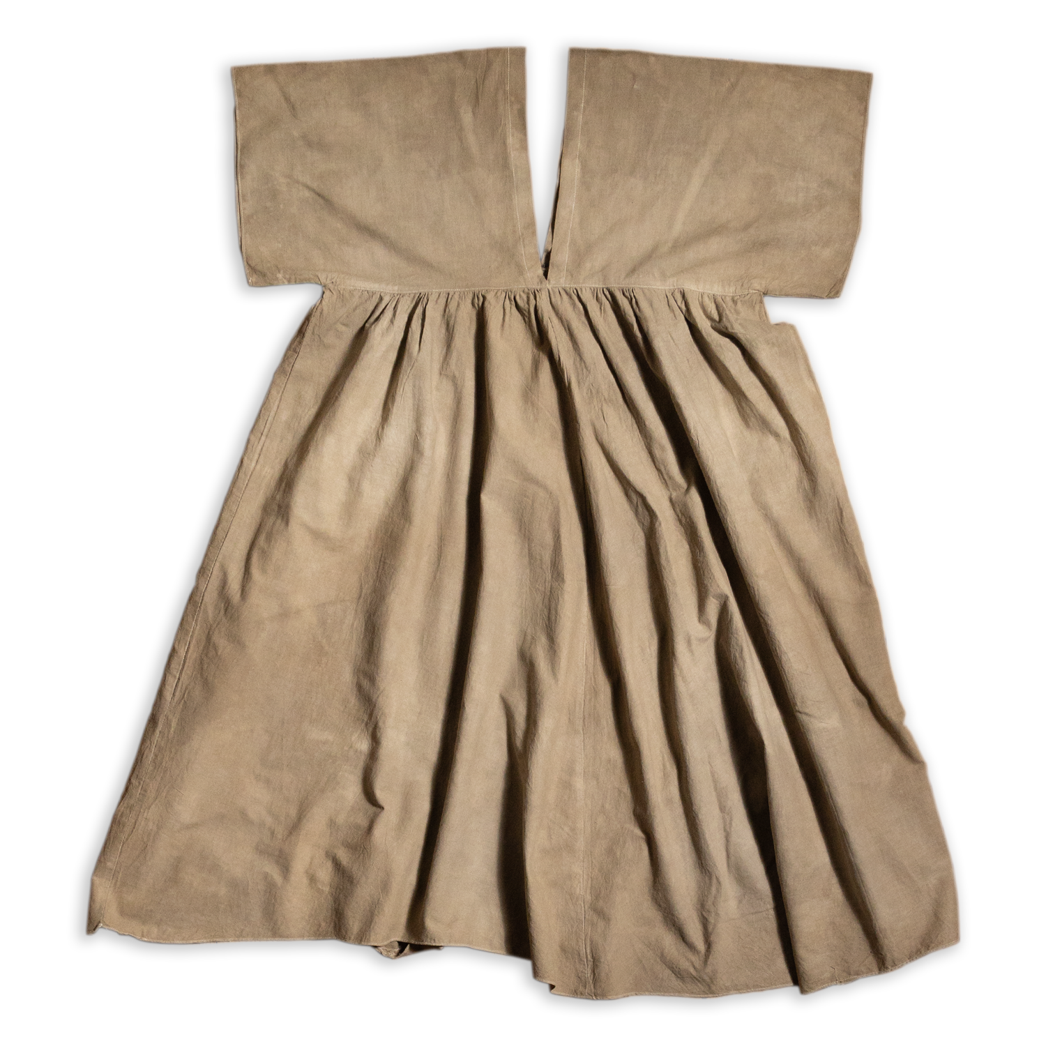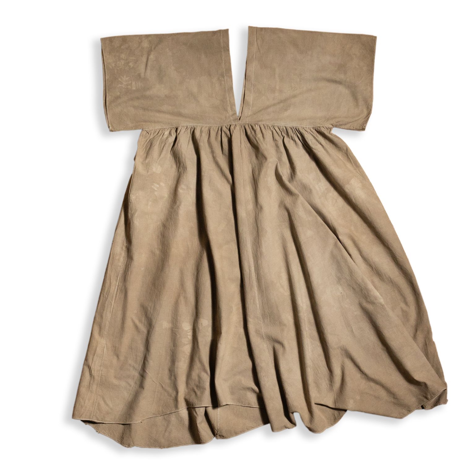 一款由布料制成的原创咖啡色连衣裙。一件古色古香的连衣裙,由@otsuks_coffee 的回收咖啡豆制成。
