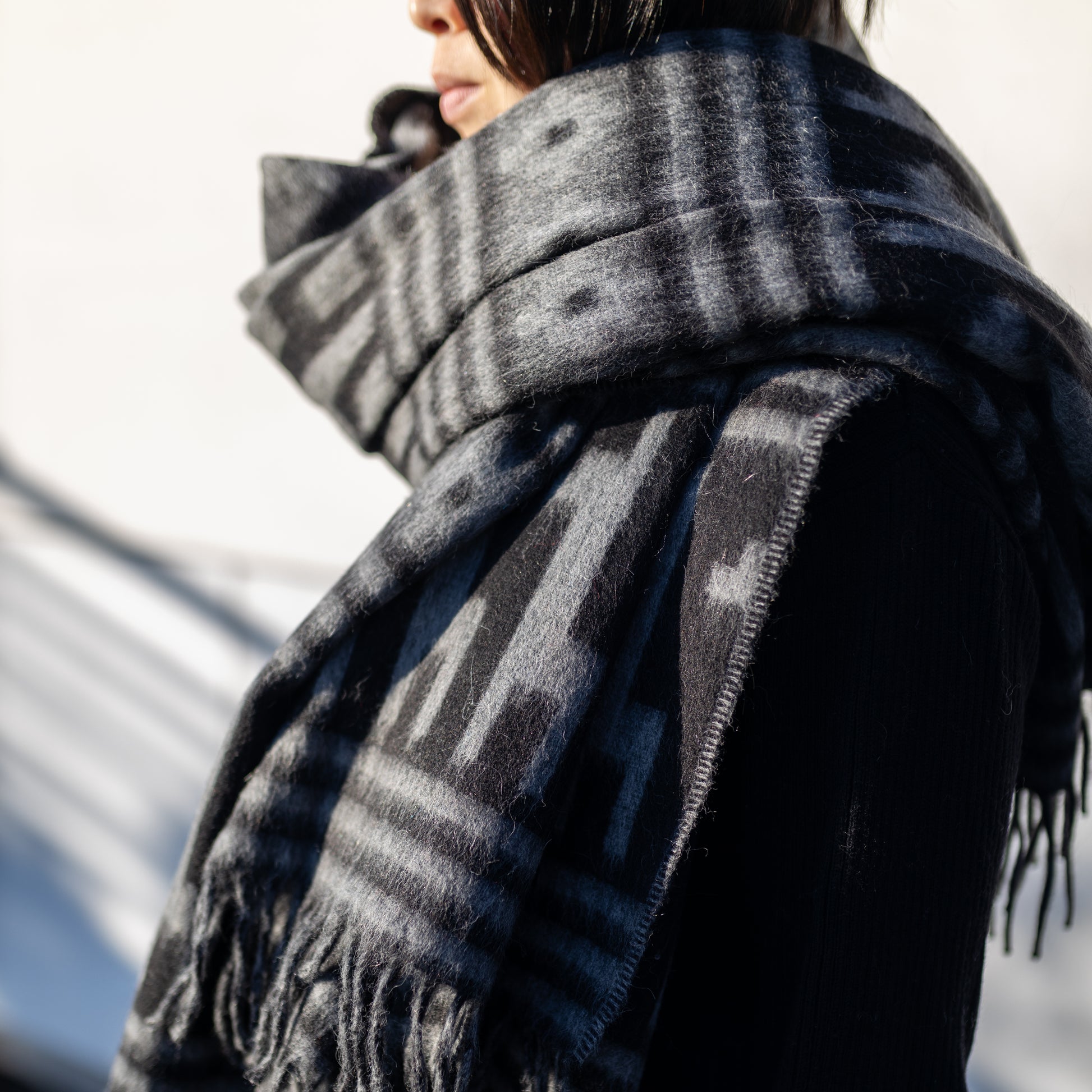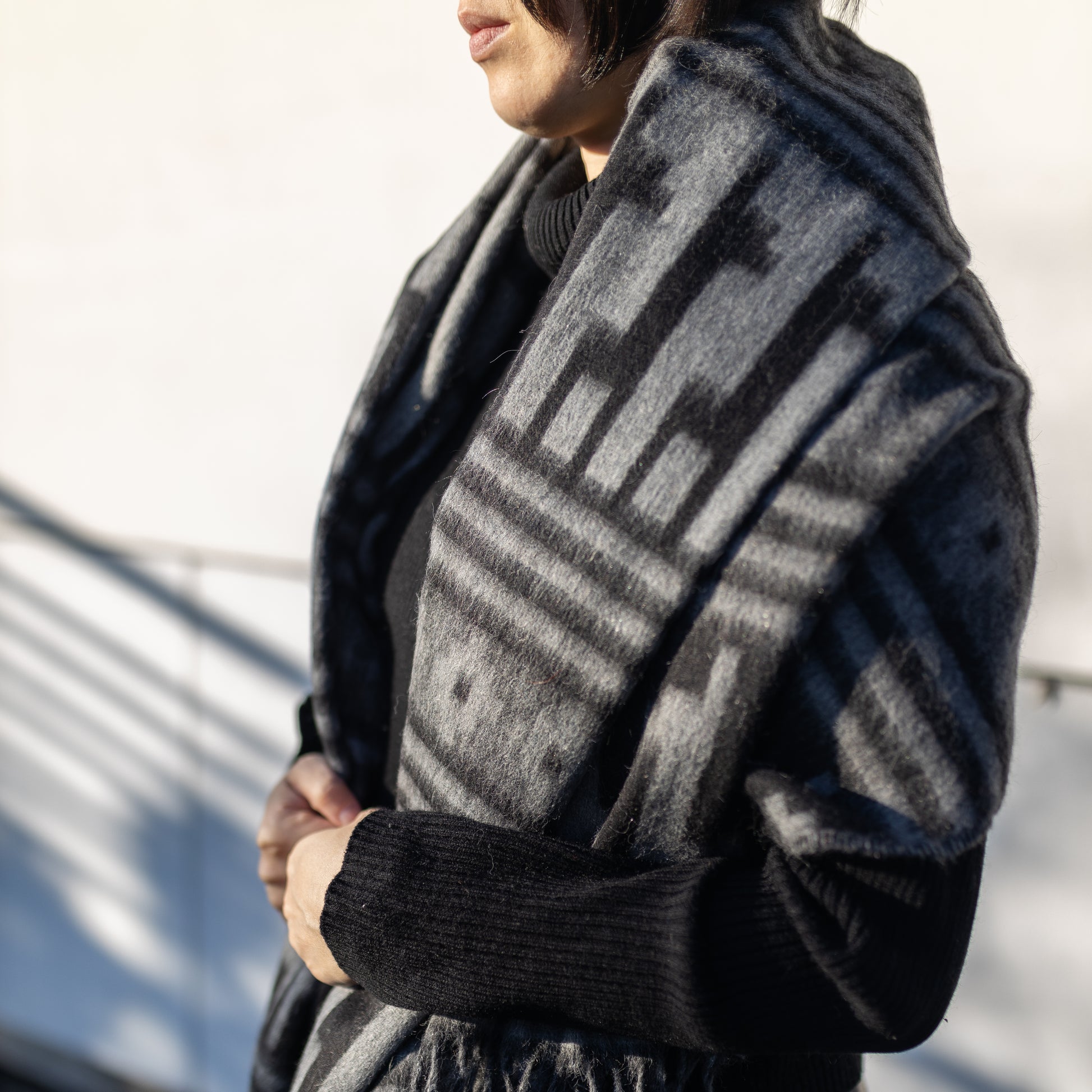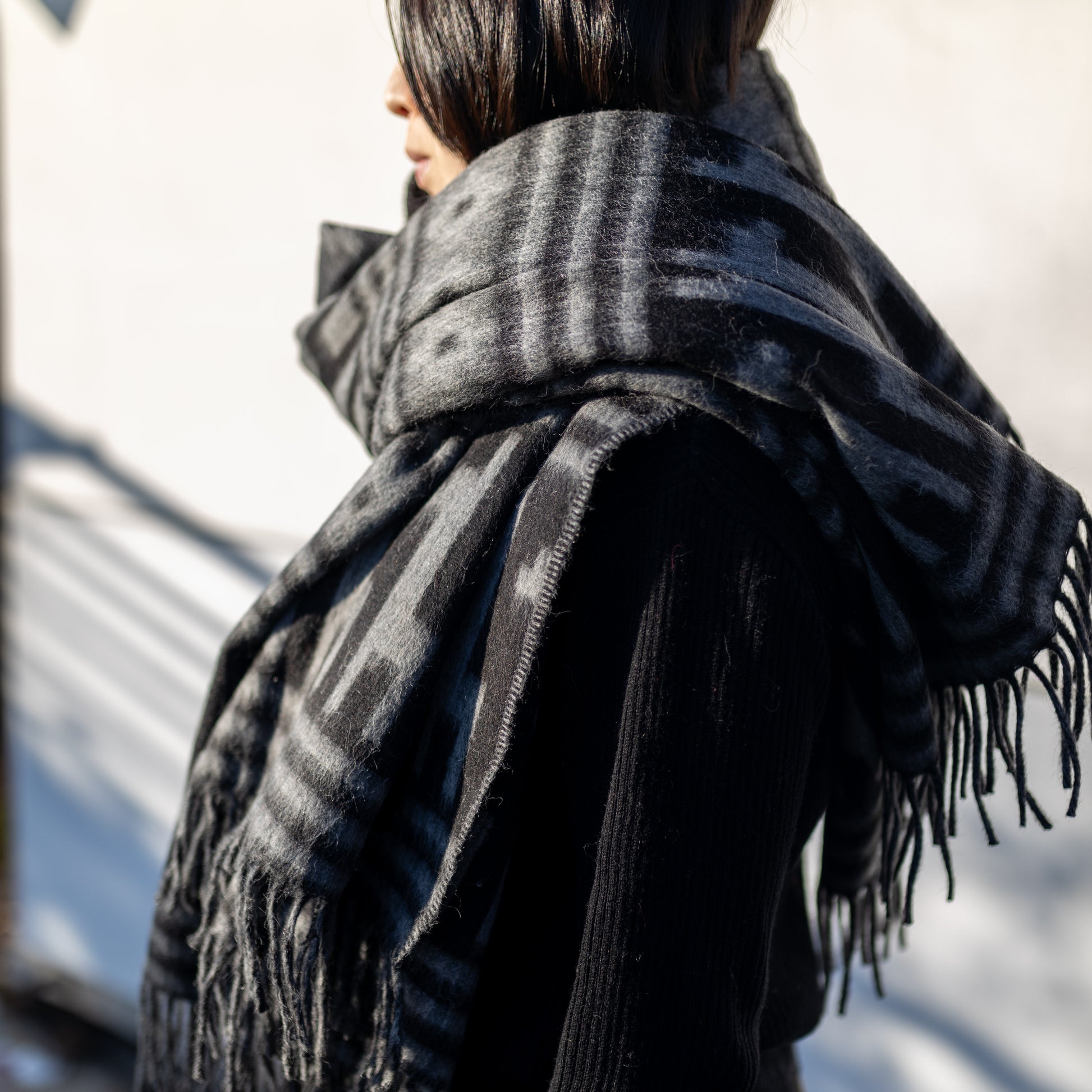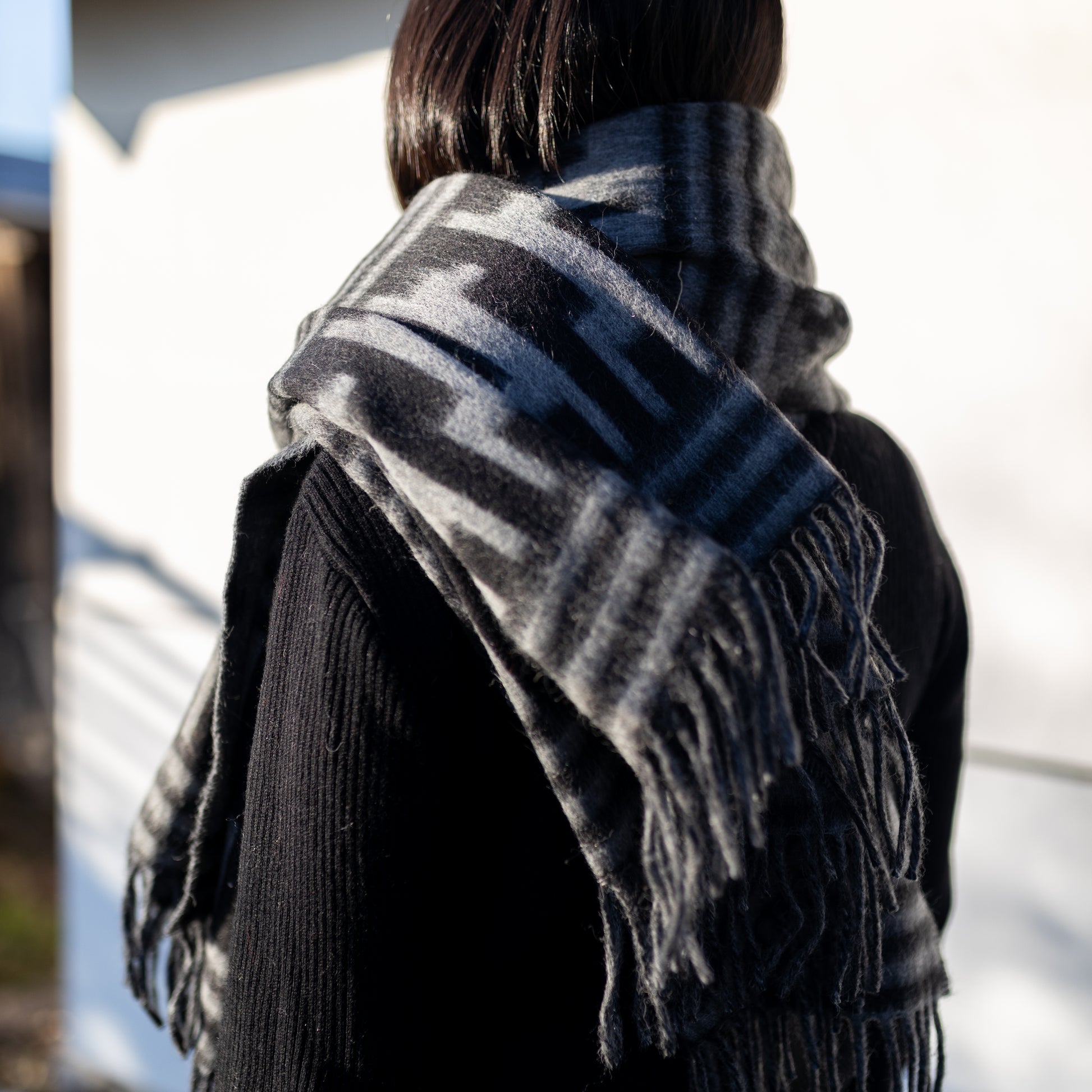 アルパカウール大判ストール(アルパカ柄)|ブラック×グレー