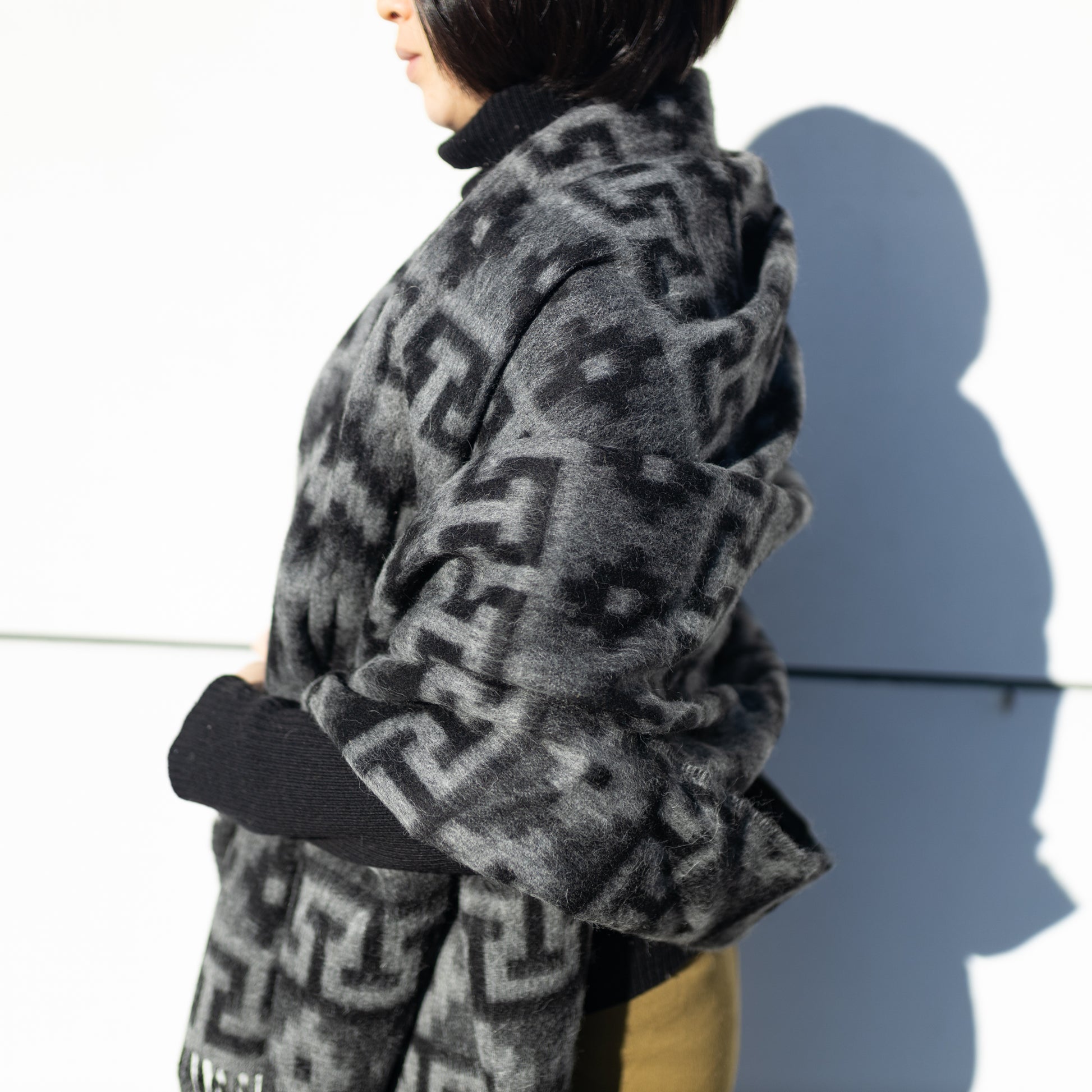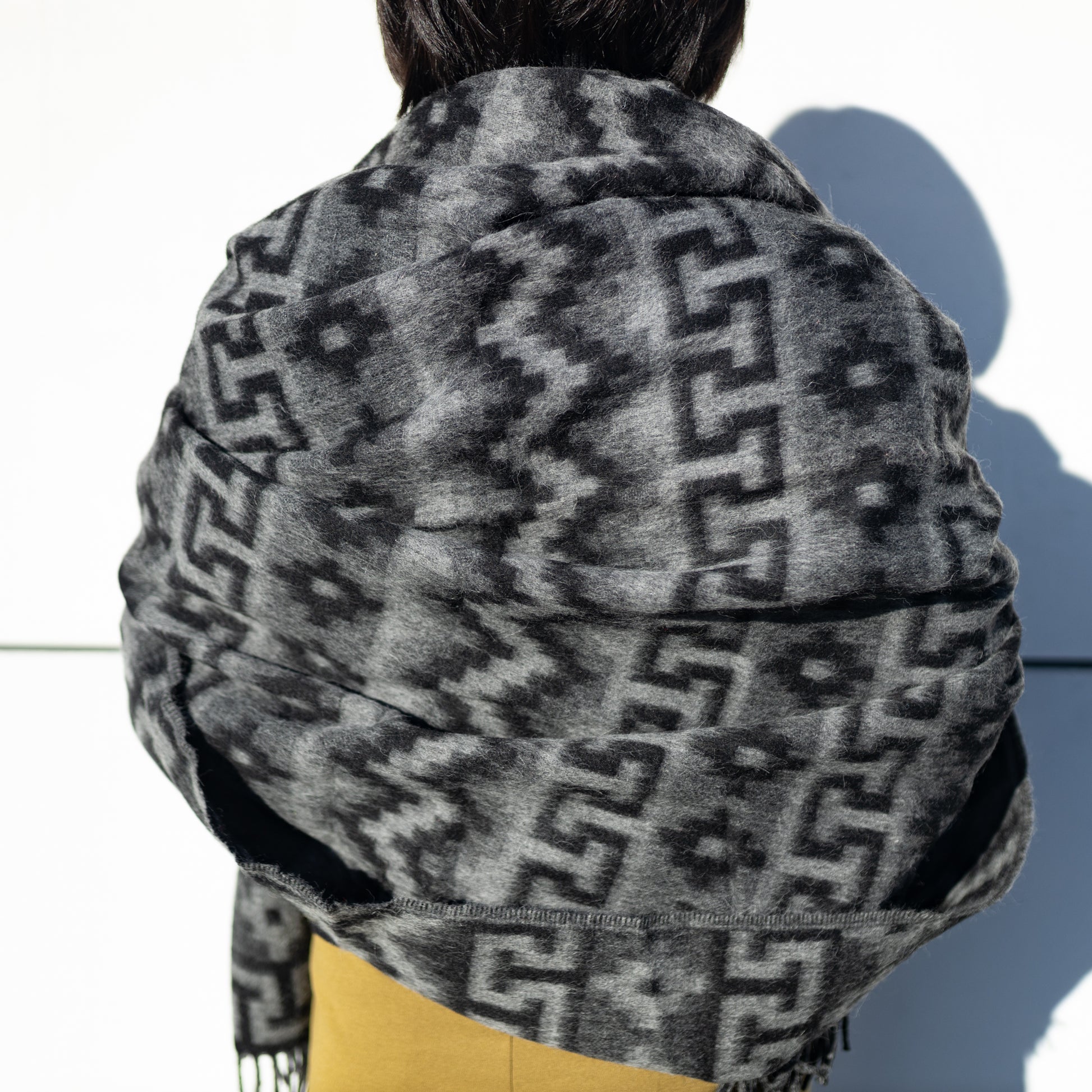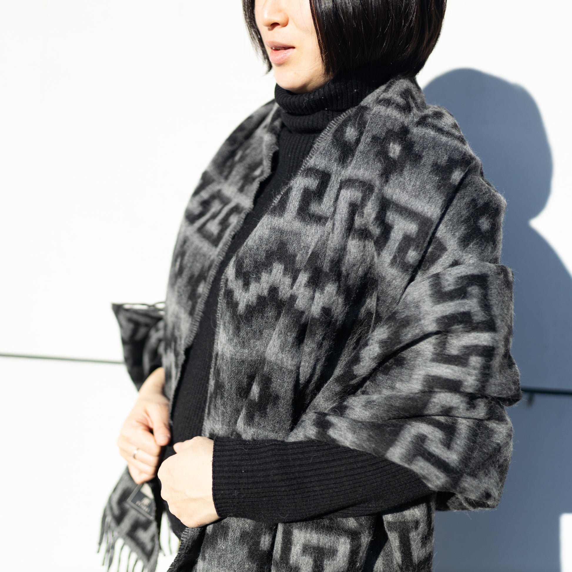 アルパカウール大判ストール (インカ柄)|ブラック×グレー