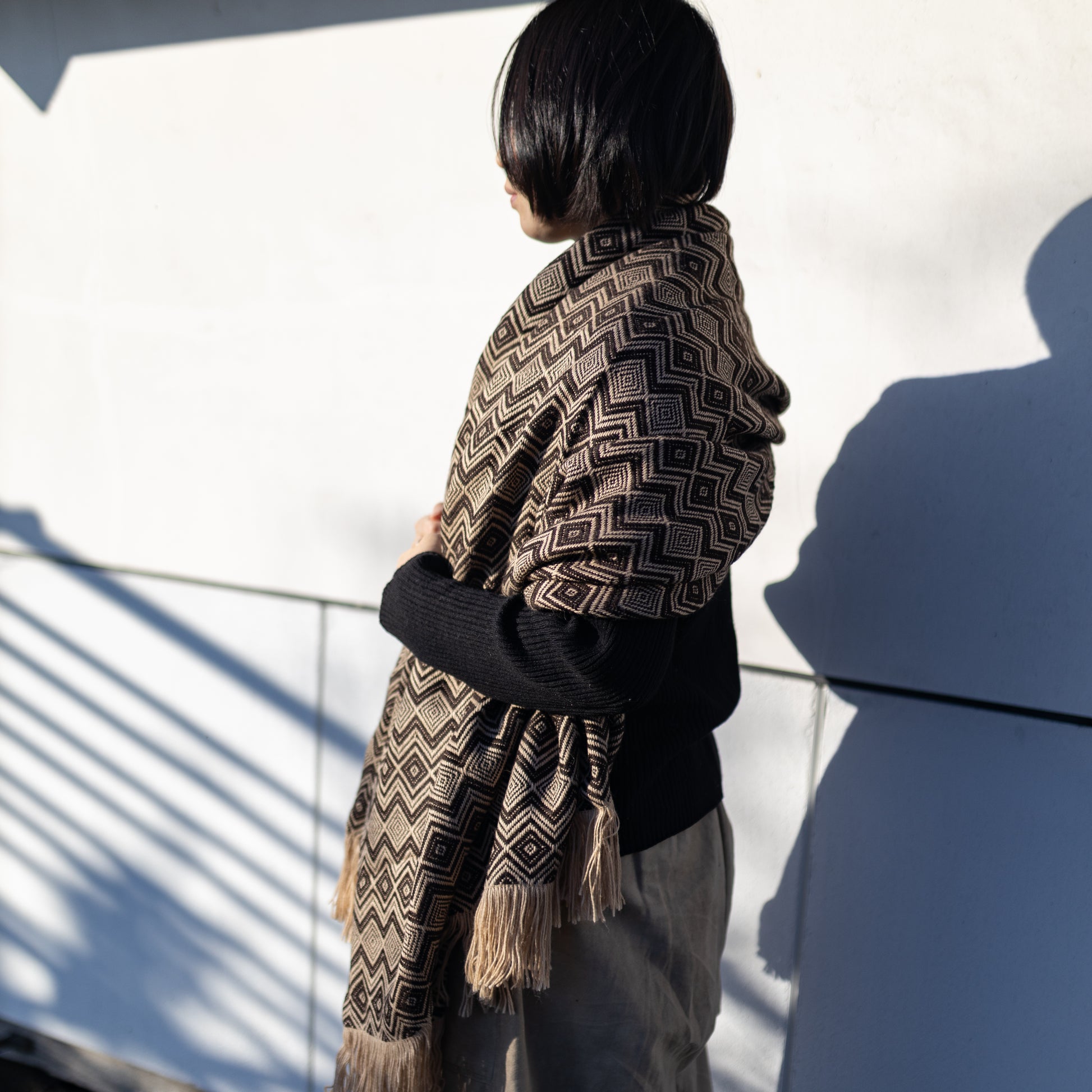 アルパカミックス大判ストール|ブラック