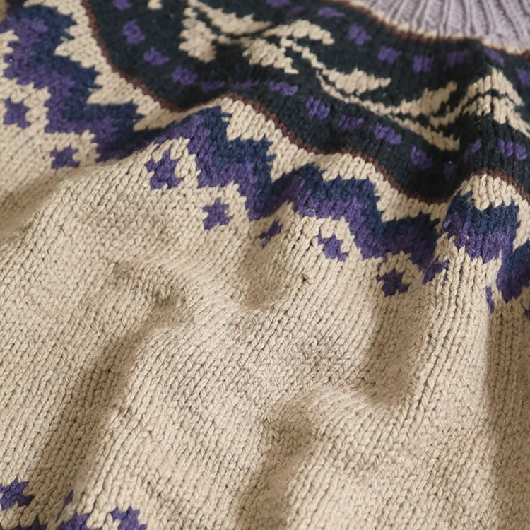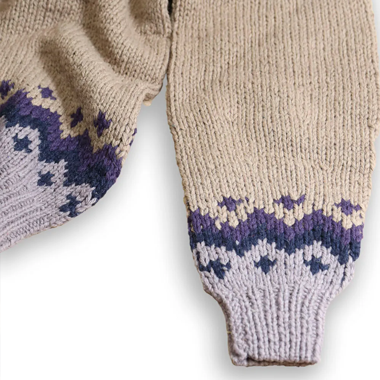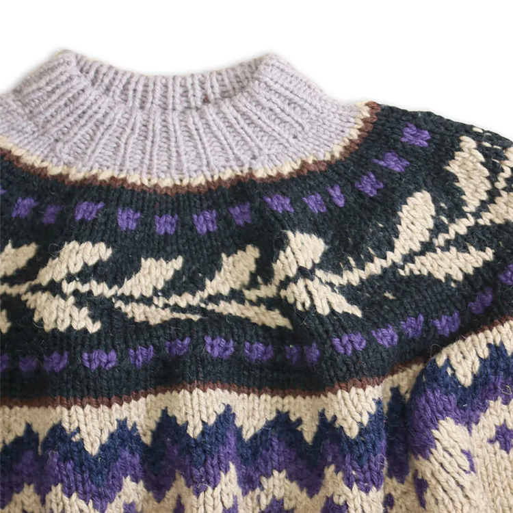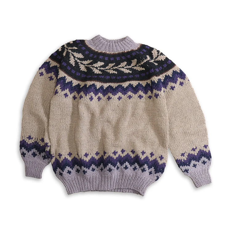 这件毛衣是由一位在玻利维亚拉巴斯经营民间艺术商店的姐姐手工编织的。该商品的图案以南美颜色代表古柯叶和的的喀喀湖的波浪。它由粗毛纱编织而成,给人一种粗犷随意的感觉,同时又不失柔软舒适。由于是手工编织,领口宽度可能存在个体差异。这是您在任何地方都找不到的独特作品。